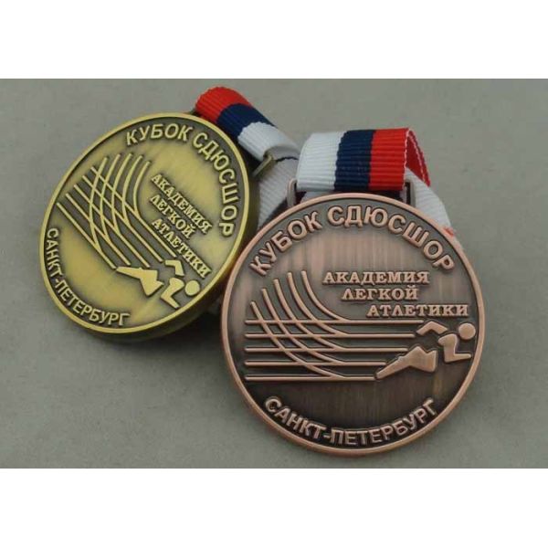 Zinc Alloy Russia Running Medal , Antique Copper Plating Ribbon Medals Images |