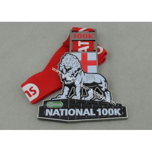 Die Casting Enamel Medal For National 100k Antique Nickel Plating And Silk Screen Printing Ribbon Images |