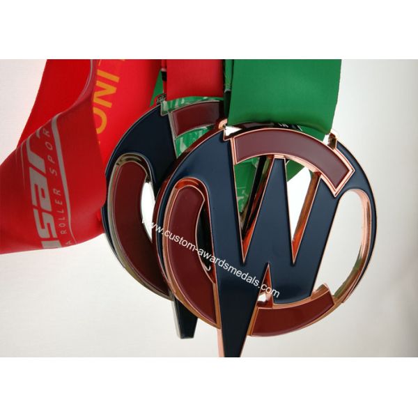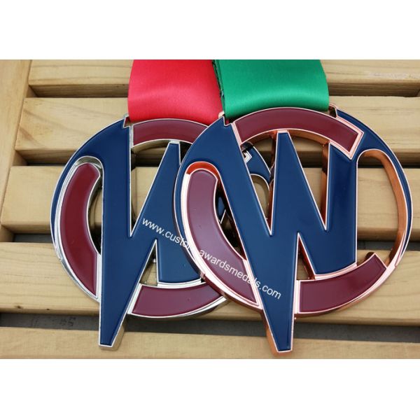 Die Casting Soft Enamel Inner Cut Medals , Personalized Ribbon Awards Medals